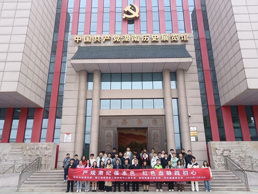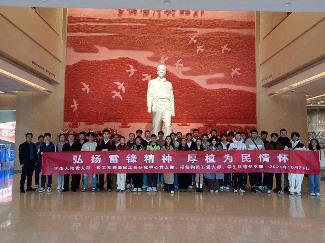 为深入学习贯彻习近平新时代中国特色社会主义思想,贯彻落实中央八项规定精神,引导党员在重温红色记忆中淬炼过硬作风、在感悟榜样精神中践行初心使命,10月26日上午,4001百老汇官方网站学生天佑党支部、教工高铁国家工程研究中心党支部、研结构第五党支部、学生铁道党支部全体党员前往湖南雷锋纪念馆及湖南党史陈列馆,开展“严规肃纪葆本色,红色血脉践初心”主题党日活动,学院党委副书记纪晓飞参加活动。