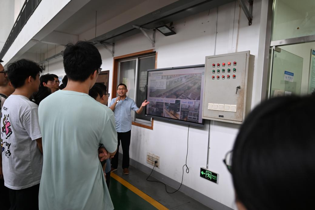 随后,高速铁路工程结构抗震研究所副所长赖智鹏老师启动了四台阵六自由度振动台模拟不同地震烈度的振动。学生在安全观测区,通过台阵上放置的参照物模型,清晰观察到不同振动强度下模型的位移变化过程,直观感受到了地震荷载的威力。接着,曾晨博士操作演示了实验室自主研发的列车-轨道-桥梁系统动力性能数物融合混合试验系统,该系统以一节高速铁路列车缩尺模型为试验子结构,将多跨轨道-桥梁系统作为数值子结构,运用先进仿真与控制技术,以极低成本复现,揭示了车轨耦合振动机理。